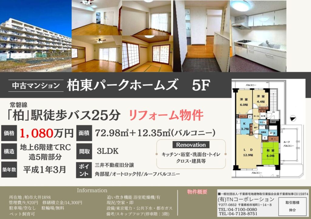 | 価格 | 1,080万円 | 維持費等 | 管理費 9,920円/月 修繕積立金 14,300円/月 |